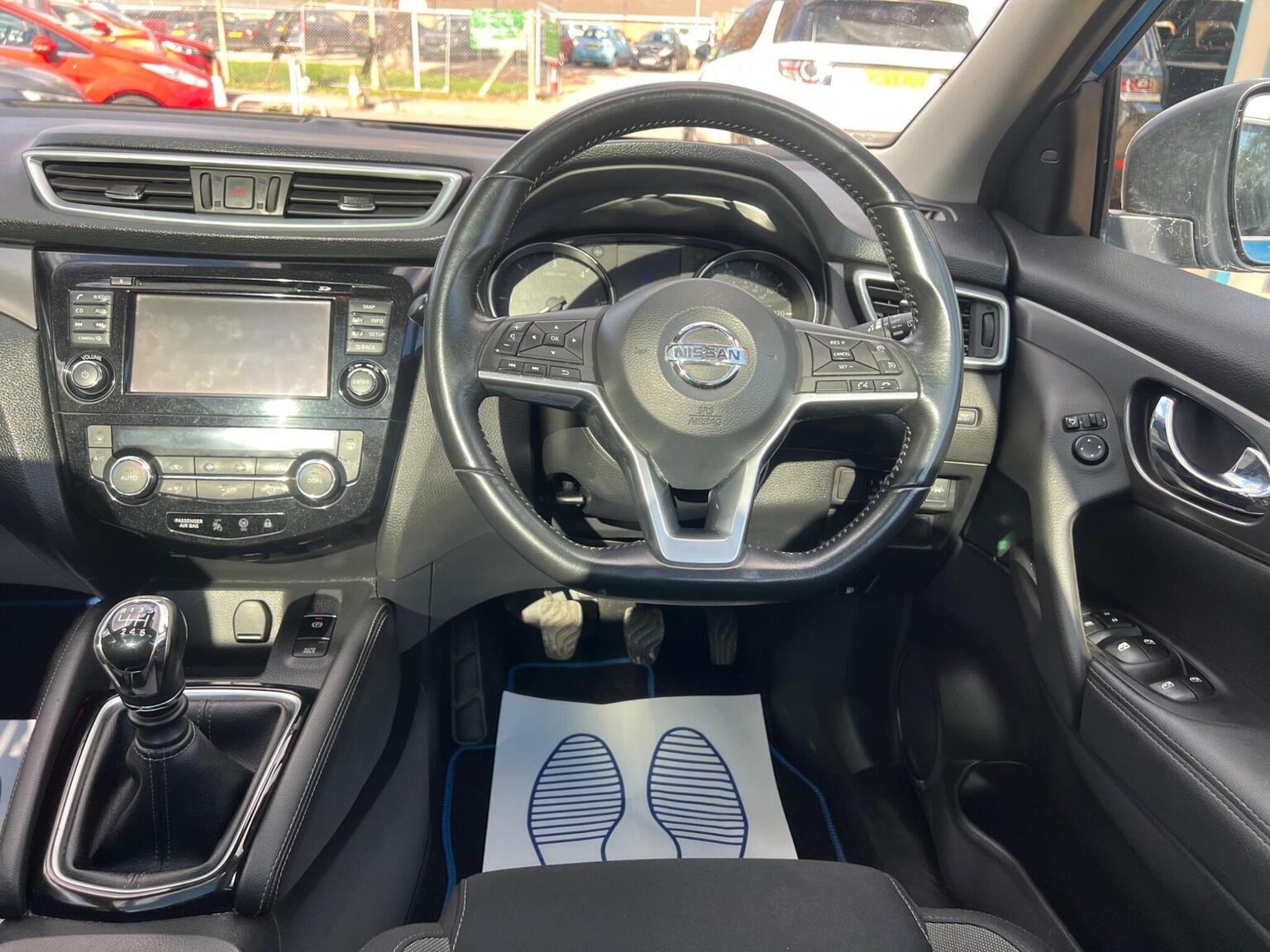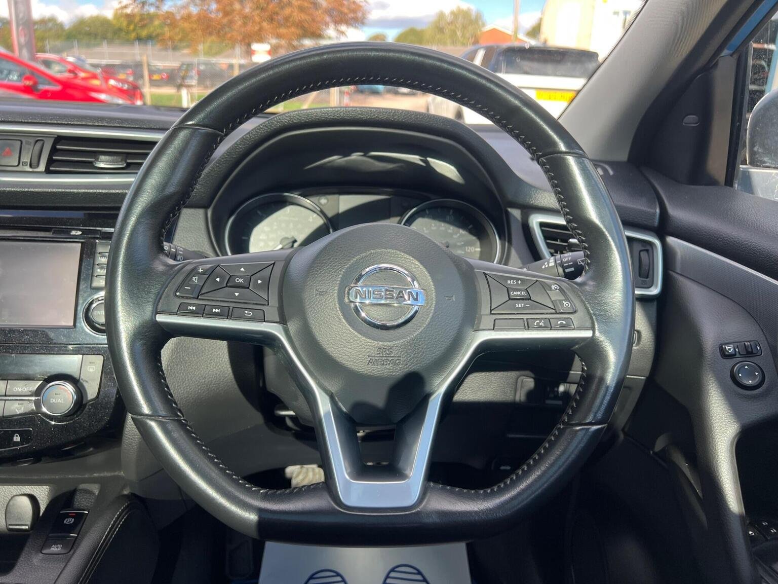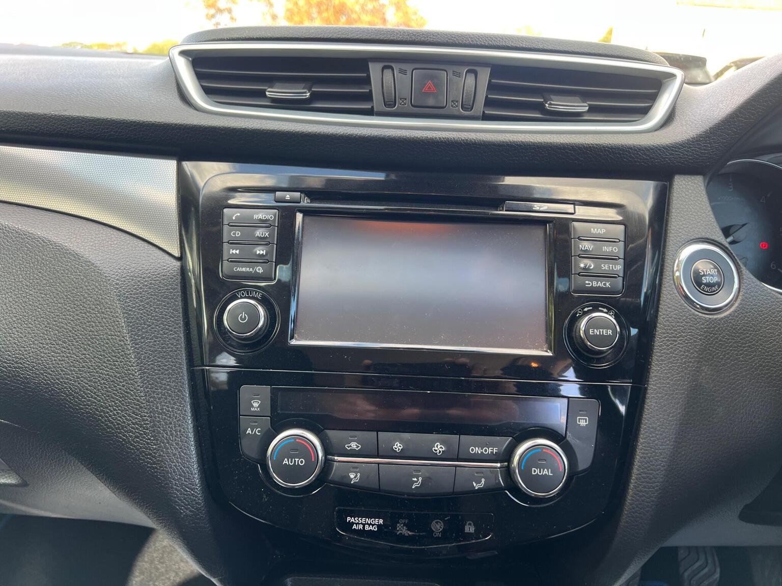 Front and Rear Seatbelt Warning, Halogen Headlamps, Headlights - High Beam Assist, Height Adjustable Front Head Restraints, Height Adjustable Front Seatbelts, Hill Start Assist, ISOFIX Child Seat Anchoring Points - Rear x2, Intelligent Around View Monitor, Intelligent Auto Headlight, Intelligent Emergency Braking, Intelligent Key, Interior Ambient Lighting, LED Signature Daytime Running Lights, LED Turn Indicator on Door Mirrors, Lane Departure Warning, Leather D Shaped Steering Wheel, Leather Gear Lever, Leather Knee Pad, Luggage Board System, Matt Silver Roof Rails, Monoform Front Seats with Plastic Backboard, Nissan Anti Theft System Immobiliser, Nissan Chassis Controls, NissanConnect Evo Touchscreen Navigation and Entertainment System, One Touch 4 x Auto Windows with Illuminated Switches, Outside Temperature Sensor, Parcel Shelf - Stow Function Under Luggage Board, Parking Sensor - Front, Passenger Airbag Deactivation System, Passengers Seat with Manual Lumbar Support, Pollen Filter, Privacy Glass, Puncture Repair Kit, Rear Parking Sensors, Rear Roof Spoiler, Rear View Camera, Rear Wiper with Reverse Link, Remote Central Locking, Seats - Passengers Height Adjustment, Selectable Steering - Normal or Sport, Shark Fin Antenna, Smart Vision Pack, Smartphone App Integration, Start Push Button, Steering Wheel Mounted Audio Controls, Synthetic Leather Wrapped Door Handle with Contrasting Stitching, TPMS - Tyre Pressure Monitoring System, Tech Pack, Thatcham Category 1 Alarm, Tilt and Telescopic Adjustable Steering Wheel, Traffic Sign Recognition, Trip Computer, USB Port, Underbody Vortex Generators, 18in Alloy Wheels - Bi-Colour, 3 Height Adjustable Rear Headrests, 6 Speakers, 60-40 Split Rear Folding Seats, AM-FM Radio and CD Player, AUX Socket, Advanced Drive Assist Display - 5in TFT Coloured Screen, Ambient Lighting Centre Console, Anti Dazzle Rear View Mirror, Auto Wipers, AutoHold Function - Stand Still Assist, Bluetooth, Body Coloured Door Mirrors, Body Coloured Handles, Boot Light, Carbon Graphite Dash Trim, Chrome Glass Surround, Chrome Interior Door Handles, Cruise Control with Speed Limiter, DAB Digital Radio, Daytime Running Lights Dip Function When Turn Signal Applied, Driver Seat Height Adjustment, Driver-Passenger-Side and Curtain Airbags, Drivers Seat with Manual Lumbar Support, Dual Zone Climate Control Air Conditioning, ESP ABS EBD and Brake Assist, Electric Auto-Folding Door Mirrors, Electric Parking Brake, Electric Speed-Sensitive Power Steering, Front 12v Power Sockets x2, Front Centre Console and Armrest, Front Seat Belts with Load Limiter and Pretensioners, Front and Rear Door Pockets with Drink Holders, Front and Rear Electric Windows